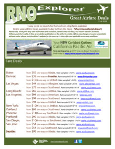 This week’s RNO Explorer featuring airfare deals available to/from Reno-Tahoe International Airport.